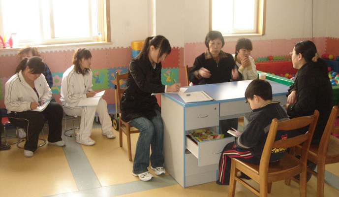 贾美香教授来中心和家长、康复师一起为孤独症儿童做现场评估、指导
