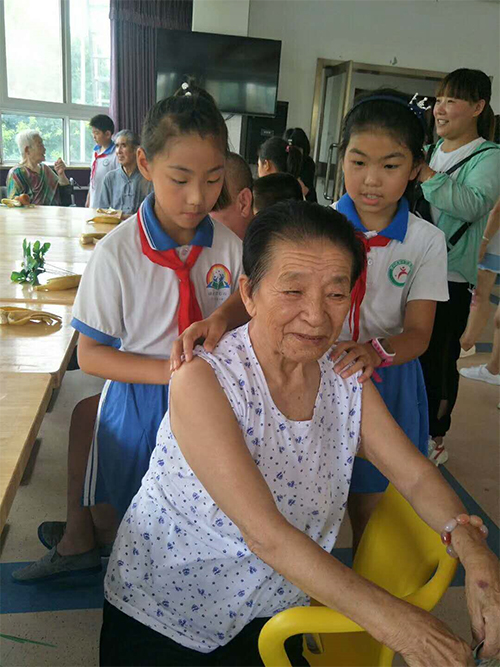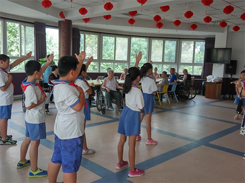少先队员们自编自导为爷爷奶奶表演节目带来快乐;
