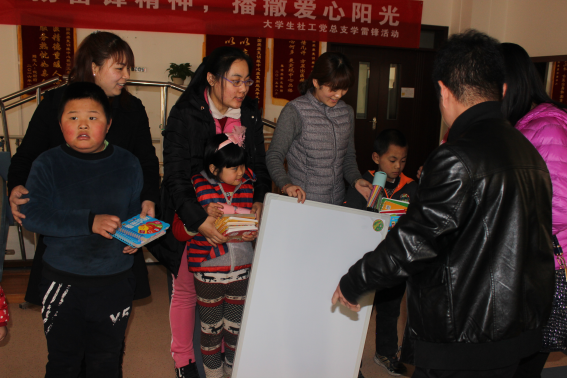 2016年3月4日,社工委志愿者在学雷锋活动日到来之际,来到房山区国爱康复训练中心,给残疾儿童带来了彩笔、图书和小黑板。让残疾儿童能够更好地学习。志愿者走进课堂和孩子们一起互动游戏。志愿者和孩子们在感统教室一起玩传球、钻圈的游戏,在集体教室玩击鼓传球的游戏。通过活动志愿者和残疾儿童建立了友好的关系,增进了彼此之间的感情。